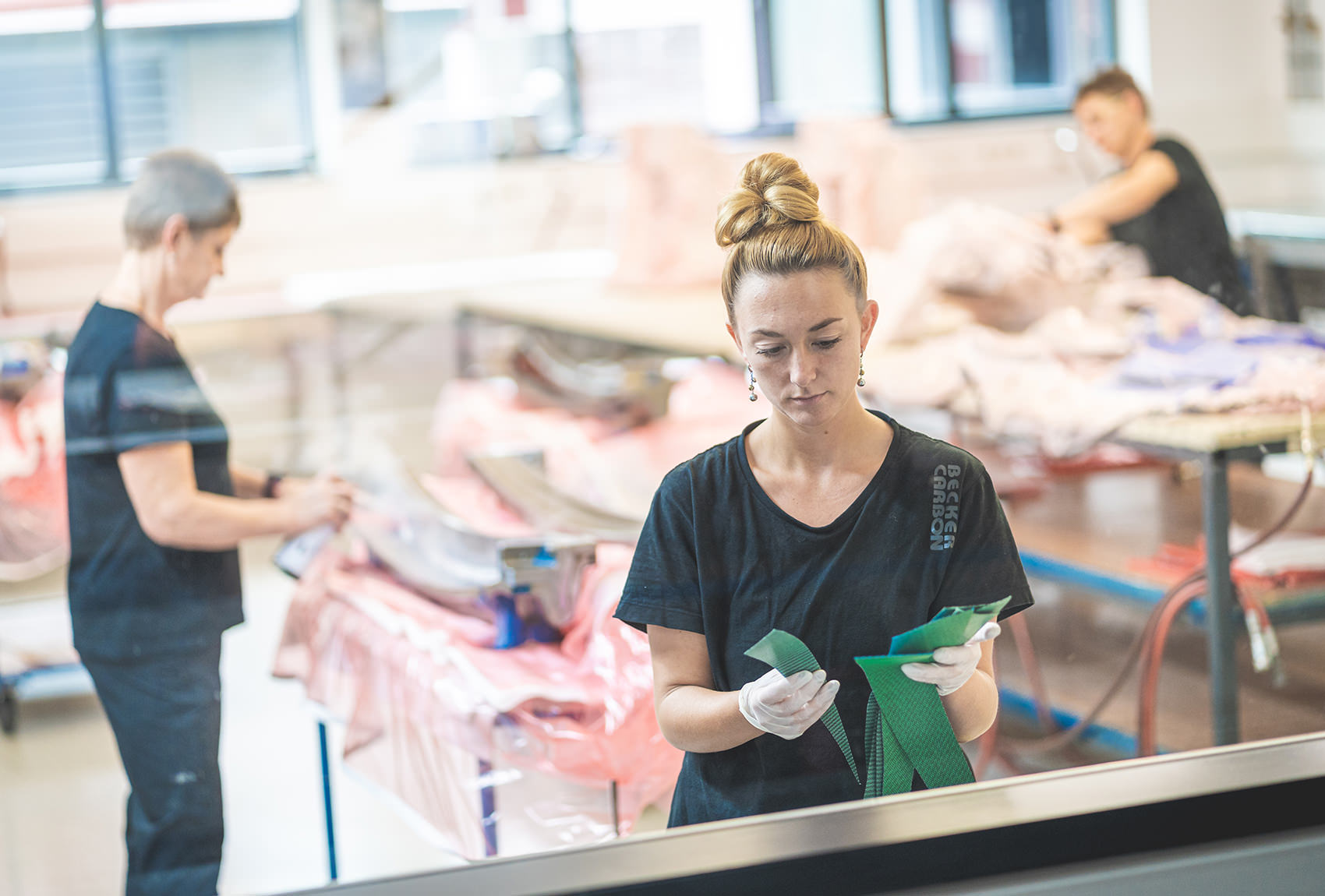 Becker Carbon Mitarbeiter bei der Vorbereitung des Laminiervorgangs